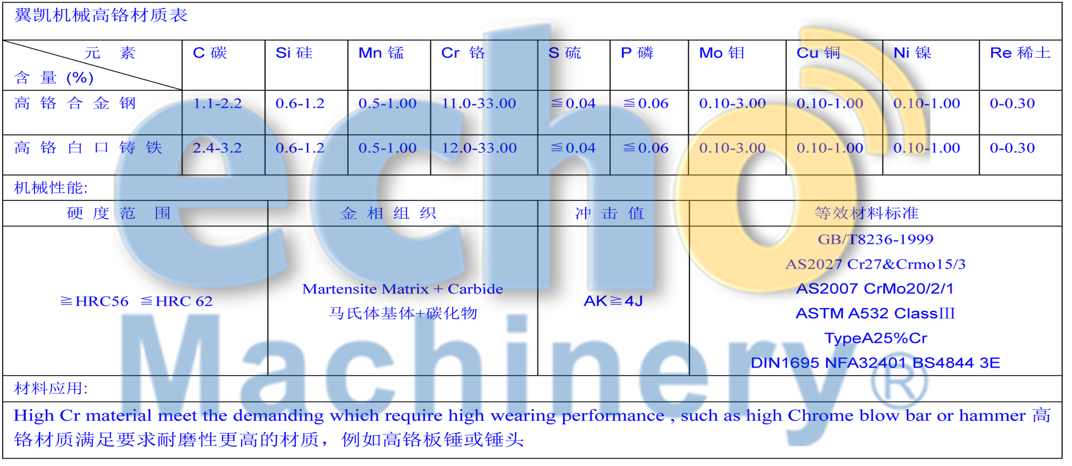 高鉻材料是指含2.0% -3.6%碳和11%-33%鉻的鑄鋼。它以高耐磨性能和具有競爭力的成本而聞名。